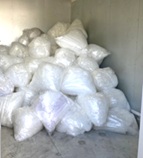 冷蔵庫では、内部の樹脂ケース類、扉付近のパッキン(内部に磁石)、コンプレッサを外したのち、大型破砕機に投入し破砕後分別を実施。